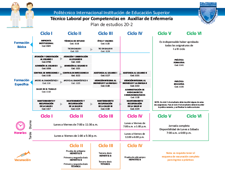 Serás capaz de desarrollarte laboralmente en instituciones hospitalarias en diferentes actividades de cuidado, como áreas asistenciales de urgencias, medicina interna, pediatría y salas de cirugía; programas de promoción de la salud y prevención de la enfermedad como los servicios de vacunación en las IPS y en las secretarías de salud; apoyar profesionales de salud ocupacional en empresas; apoyar servicios de ingreso o egreso de pacientes a través del manejo de historias clínicas y además asistir al adulto mayor en hogares geriátricos.